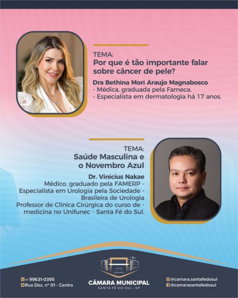 • “Saúde Masculina e o Novembro Azul”, com o Dr. Vinicius Nakae, médico urologista, professor de Clínica Cirúrgica do curso de Medicina do Unifunec e membro da Sociedade Brasileira de Urologia.