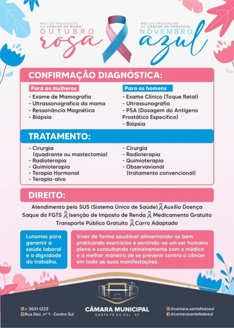 A iniciativa integra as ações alusivas às campanhas Outubro Rosa e Novembro Azul, que têm como objetivo conscientizar a população sobre a importância da prevenção e do diagnóstico precoce do câncer, tanto em mulheres quanto em homens.